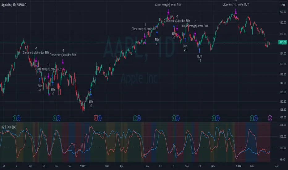 Overall, the strategy uses a combination of RS and RoC indicators, normalized for better comparison, to identify potential buy and sell opportunities based on the stock's performance relative to the market and its momentum.