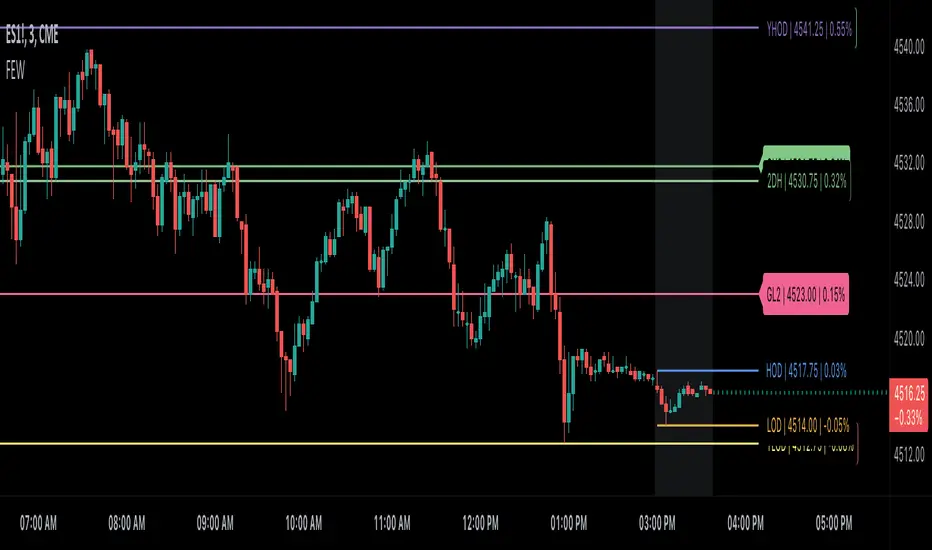 * Tracks Current, Previous, and Two Previous Globex Sessions/ Futures: [High, Low, & Open]