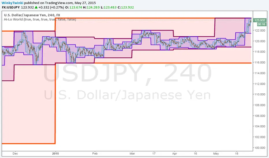 This script plots the highs/lows from multiple timeframes onto the same chart to help you spot the prevailing long-term, medium-term and short-term trends.