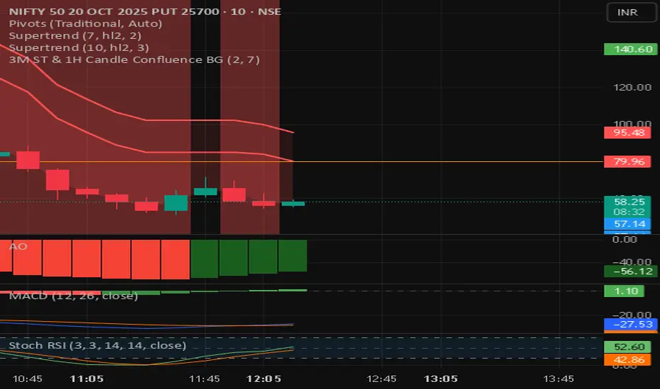 3m (MACD crossover, MACD histogram bar green or above the baseline, Awesome oscilltor above the base line, supertrnd (10, 3) (7,2) up )