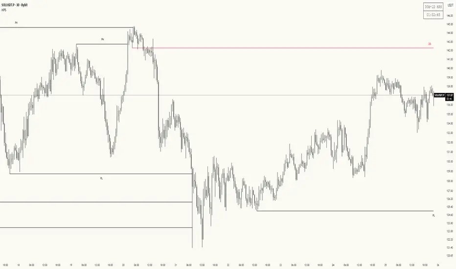 Confirmed Pivot Detection: HPS only displays confirmed HTF pivots that have been interacted with. Unlike basic pivot indicators that show all pivots, HPS requires pivot interaction before displaying, eliminating noise and focusing on actionable structure changes. Pivots are marked with PH (Pivot High) and PL (Pivot Low) labels when enabled.