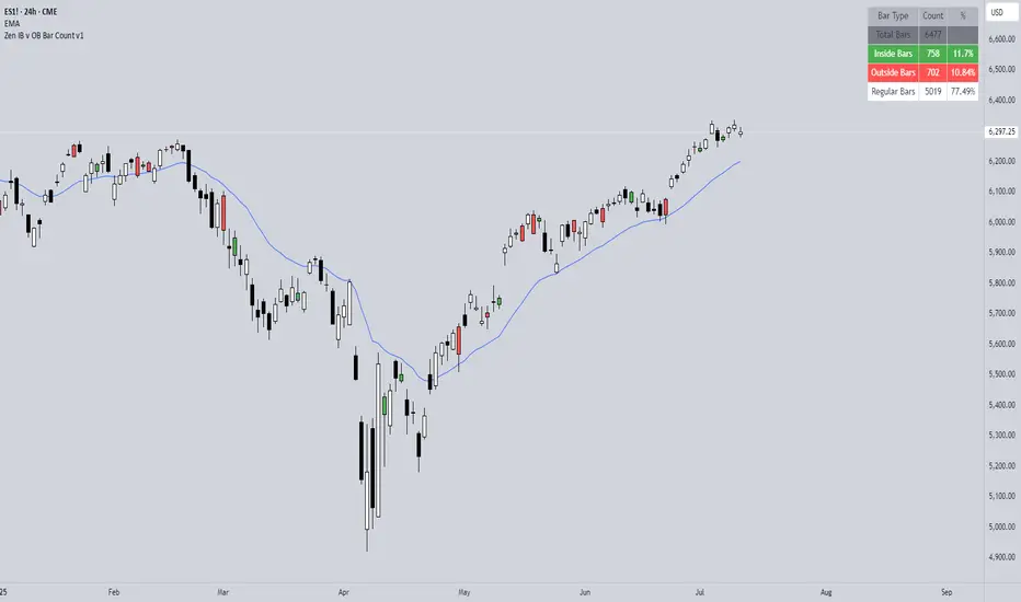 - Counts inside bars, outside bars, and regular bars on the daily chart.