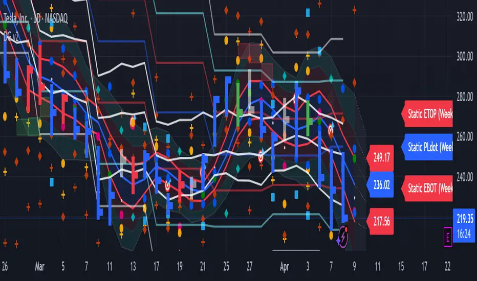 This indicator is a unique implementation of Drummond Geometry principles, specifically designed to help traders understand market structure, identify key decision points, and improve trade timing across any asset class or timeframe. It combines several essential elements—each with a distinct purpose—into a unified framework that offers actionable insights.