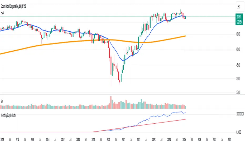 The trades are considering buying the available amount on the 1st candle of each month, at the Open price. The "Total Balance" considers the close price of each candle.