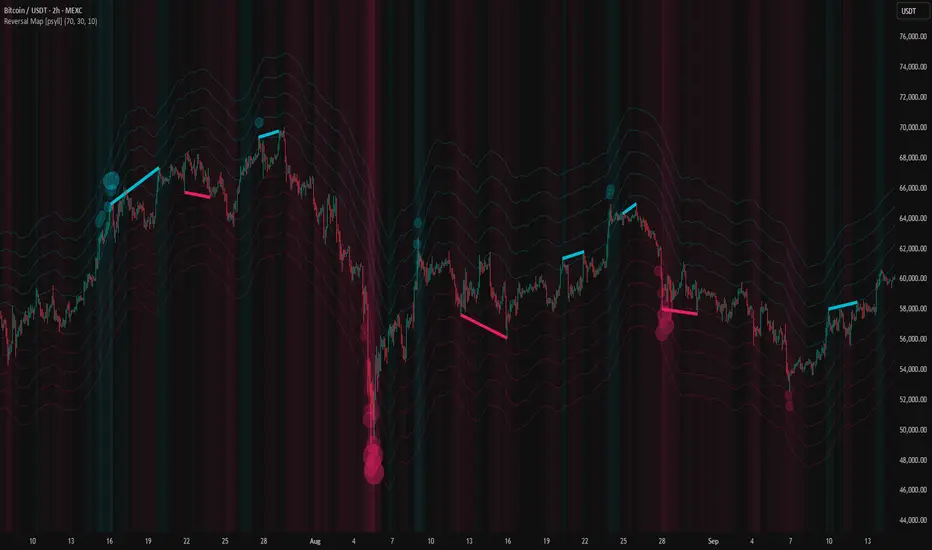 The Reversal Map [psyll] is a dynamic confluence tool that visualizes potential market reversals through adaptive volatility mapping, RSI divergences, and multi-dimensional momentum alignment.