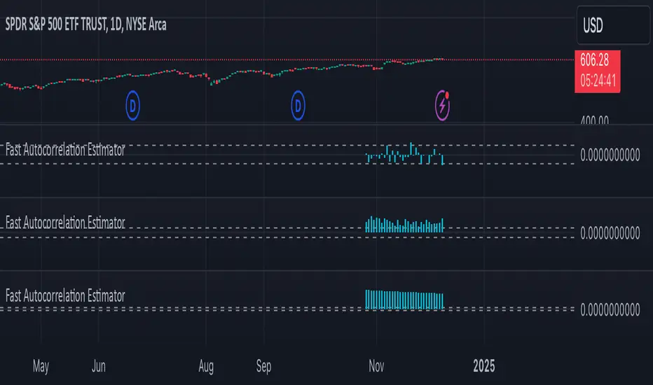 This distinction is crucial in understanding the underlying relationships in time series data and making more informed decisions based on those relationships. For example, let's consider a time series with three variables: A, B, and C. Suppose that A has a direct relationship with B, B has a direct relationship with C, but A and C do not have a direct relationship. The ACF between A and C will capture the indirect relationship between them through B, while the PACF will show no significant relationship between A and C, as it accounts for the indirect dependency through B. Meaning that when ACF is significant at for lag 5, the dependency detected could be caused by an observation that came in between, and PACF accounts for that. This indicator leverages the Fast Moments algorithm to efficiently calculate autocorrelations, making it ideal for analyzing large datasets or real-time data streams. By using the Fast Moments algorithm, the indicator can quickly update ACF and PACF values as new data points arrive, reducing the computational load and ensuring timely analysis. The PACF is derived from the ACF using the Durbin-Levinson algorithm, which helps in isolating the direct dependency between a time series and its lagged values, excluding the influence of other intermediate lags.