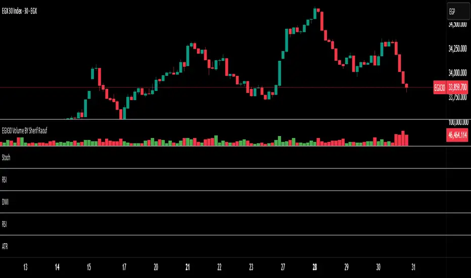The indicator can read volume for EGX30 with any time frame ( 10,15,30 mins ... etc. )