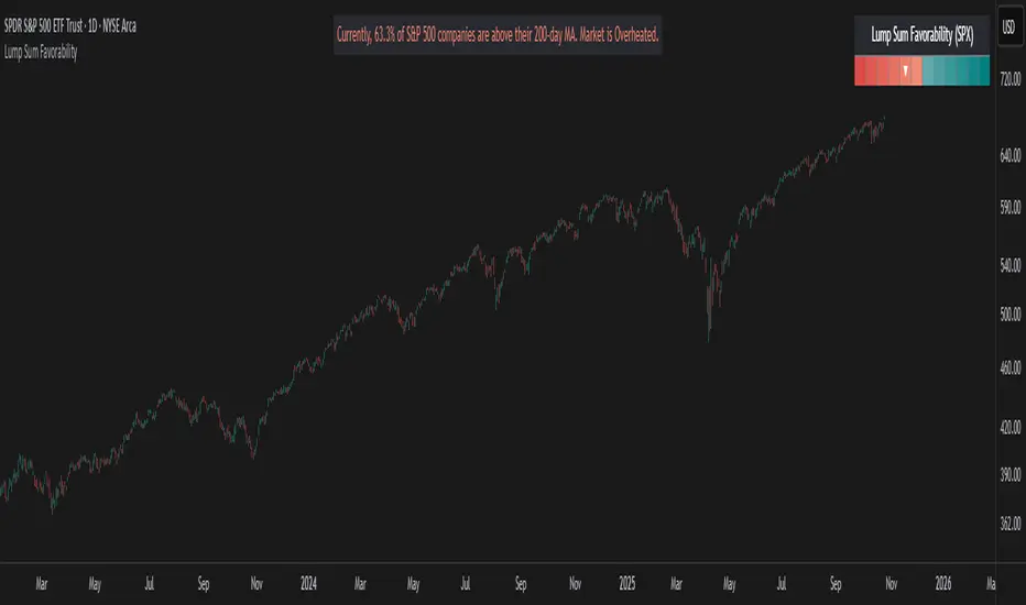 High Value (>= 50%): More than half of the stocks are above their long-term average. This signifies the market is "Overheated" or in a risk-on phase. The favorability for a new lump sum investment is considered Low.
