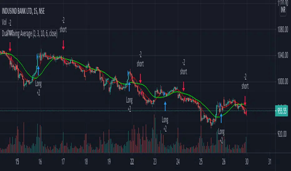 This strategy uses two moving averages of 21 and 8 to generate buy or sell signal.