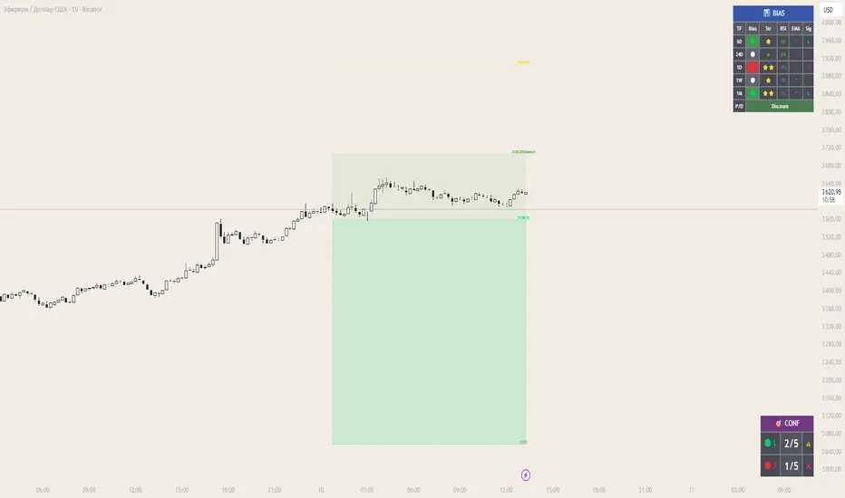 Multi-timeframe bias indicator with Smart Money Concepts for high-probability entries.