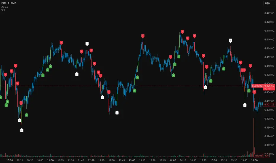 This indicator highlights “aggressive” candles—bars that combine exceptional range, volume, and closing position—and optionally recolours the entire candle so they stand out. It also attaches a compact volume bubble to the very first aggressive candle in each sequence, helping you see where bursts of activity start.
