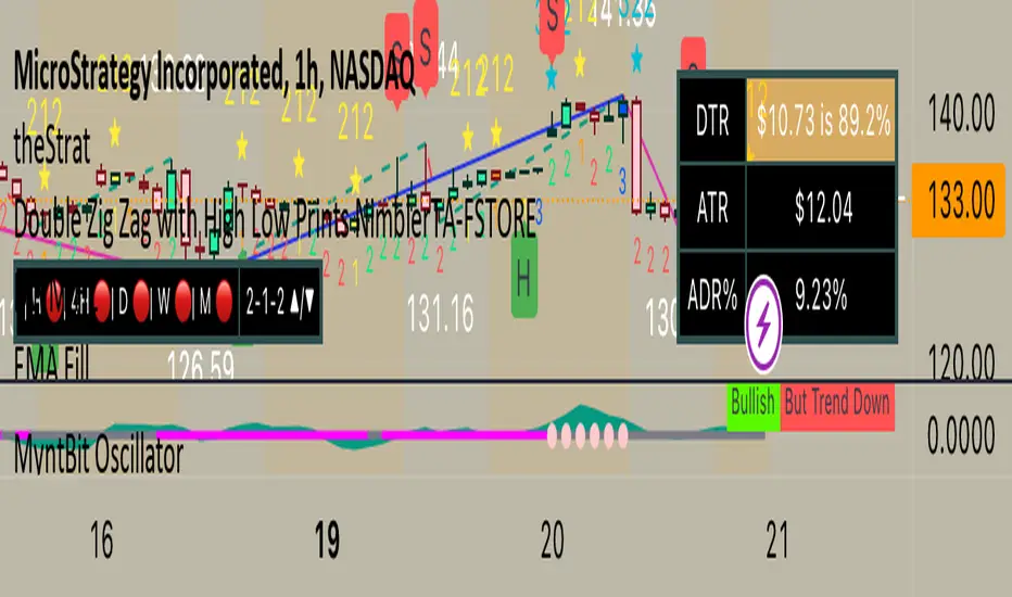 Furthermore, the code includes logic to detect specific candlestick patterns, such as the "Hammer" and "Shooting Star," which are often used to identify potential market reversals. It also tracks and plots the appearance of these patterns on the chart, helping traders to spot them visually. The script can generate alerts for these patterns and other specific price action setups, such as the "2-1-2" and "3-2-2" reversals, which are part of the Strat trading strategy. Additionally, it includes a feature to track premarket data, which is particularly useful for understanding market sentiment before the regular trading session begins. The indicator is designed to provide traders with a robust tool for analyzing market trends and making informed trading decisions.