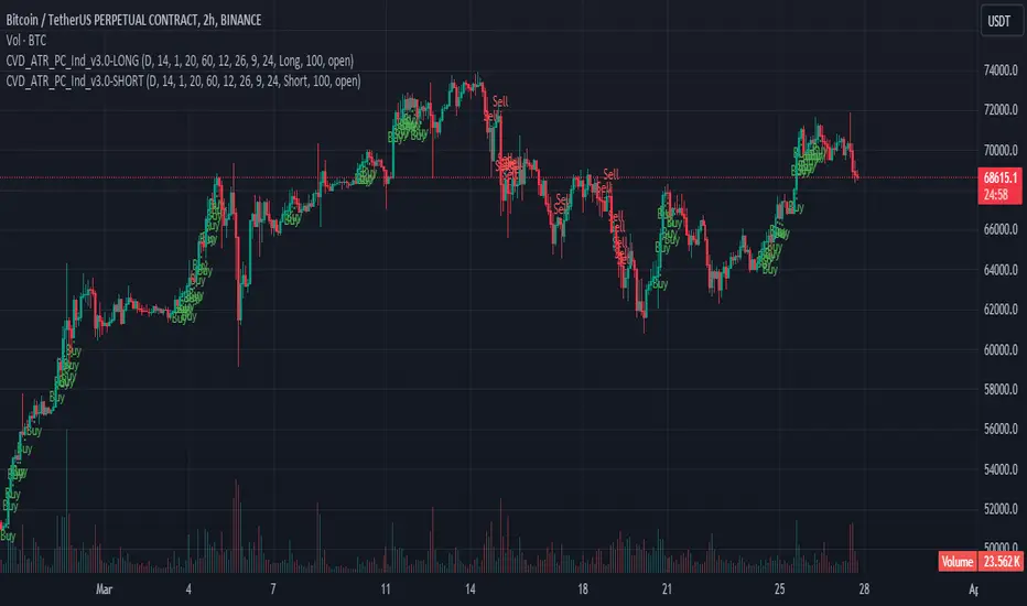 This indicator combines several key elements to provide insights into market trends and potential trading signals. It incorporates Cumulative Volume Delta (CVD), Dynamic Average True Range (ATR), Percentage Change, MACD (Moving Average Convergence Divergence), and G-Trend filters. By analyzing volume, price movements, and momentum indicators, it aims to identify potential buying and selling opportunities.