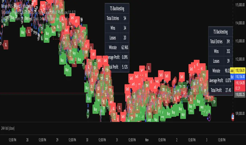 A flipped version of the ICT Turtle Soup indicator. Reverses buy/sell logic and TP/SL directions for contrarian testing. Includes adaptive entries, dynamic/fixed risk modes, alerts, and a built-in backtest dashboard