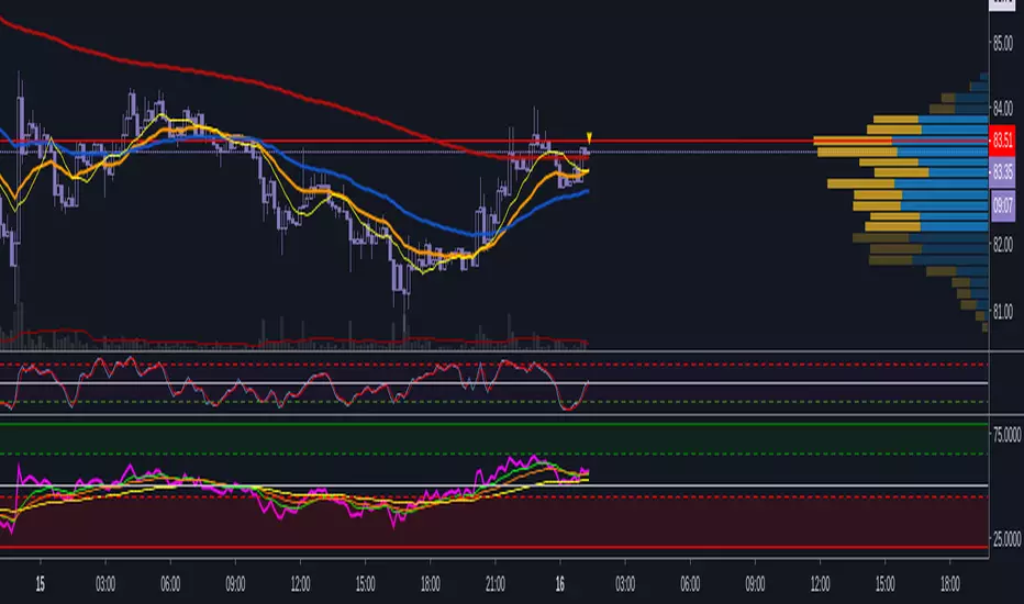 This indicator is mostly the same as other RSI+EMA indicators, the relevant difference is that it uses three EMAs instead of one.