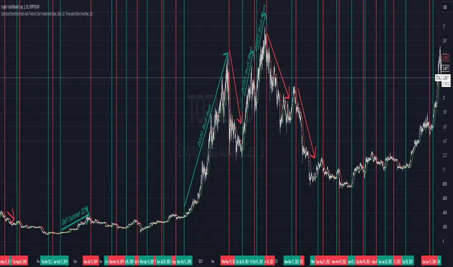 Smoothing Options: Select from various smoothing methods including Simple Moving Average (SMA), Exponential Moving Average (EMA), Hull Moving Average (HMA), Volume Weighted Moving Average (VWMA), and Regularized Moving Average (RMA) to refine the trend representation.