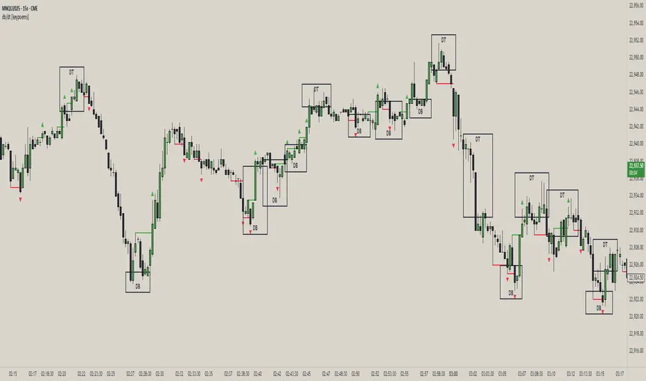 This indicator applies market structure theory which suggests that trend changes are often preceded by breaks of significant swing points. The double pattern recognition is based on classical technical analysis principles where price creates similar levels twice before reversing direction, indicating exhaustion of the prevailing trend.