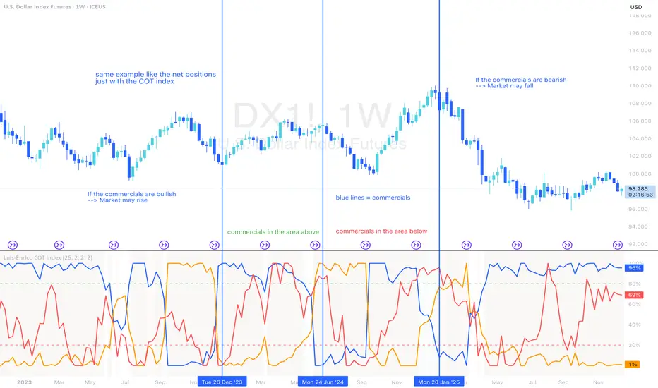 By normalizing the positioning data into a single index value, the tool simplifies the interpretation of complex COT reports and helps traders assess potential turning points or confirmation of existing trends.