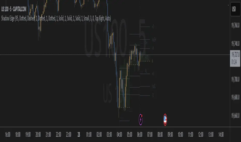 Shadow Edge is an advanced technical analysis tool that visualizes key price levels and statistical patterns based on multiple timeframe analysis. It helps traders identify potential support, resistance, and expansion zones by tracking historical price behavior at specific hours of the trading day.