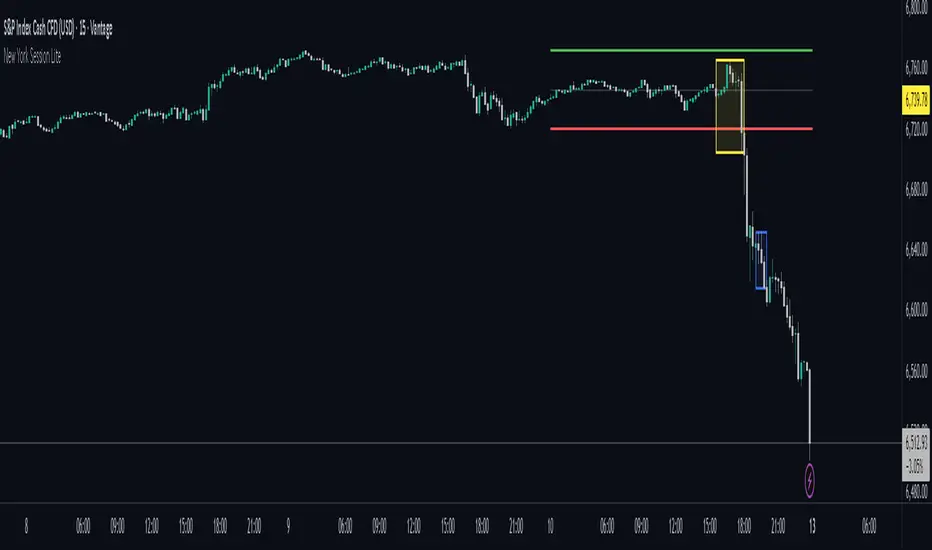 Този индикатор е създаден, за да предостави на трейдърите цялостен поглед върху ключови елементи от пазарната структура, с фокус върху Нюйоркската сесия. Вместо да добавяте няколко отделни индикатора, този скрипт обединява най-важните инструменти на едно място, като поддържа графиката ви чиста и организирана.