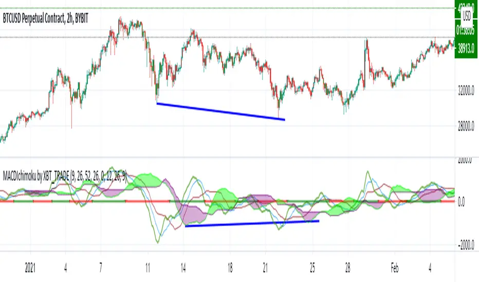 The Green Line is MACD , other are Tenkan and Kijun line from MACD line you can use this indicator and it help you to find komu divergence and price