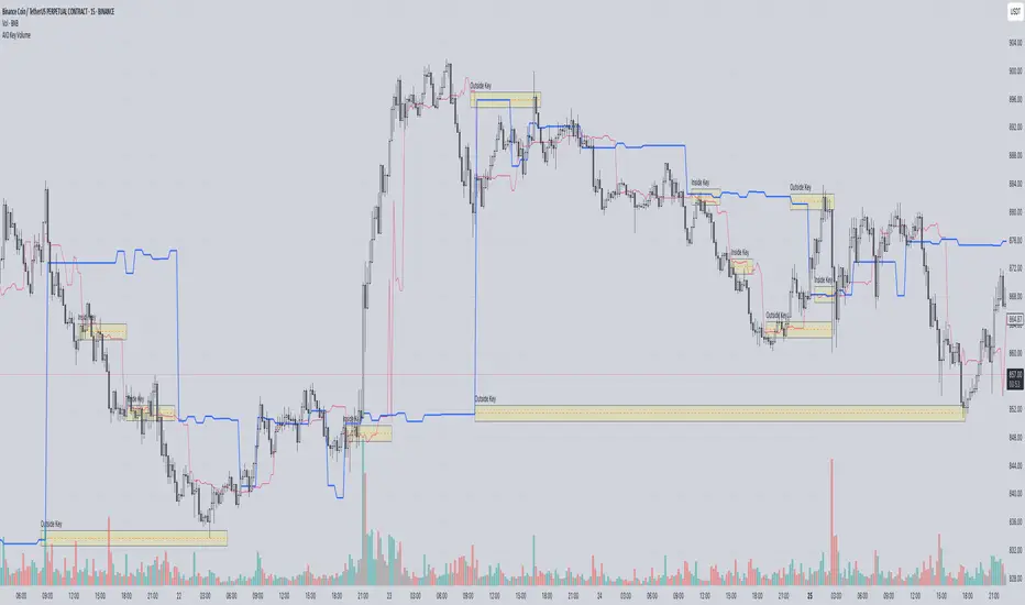 - Outside Key Volume: the past key volumes. When the price moves far away from the current or inside key volumes. Look at the left side key volume lines. That is outside key volume. You can see that the price also react strongly at these levels.