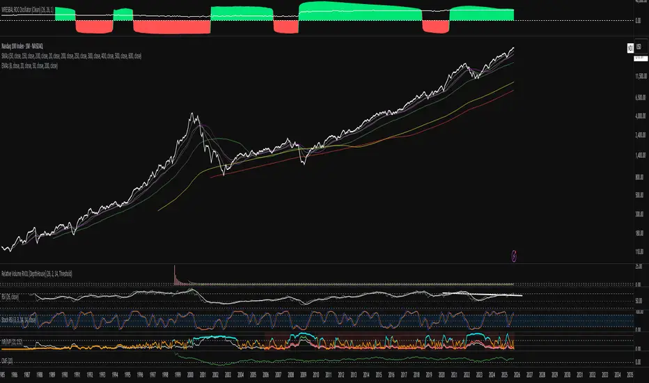 The oscillator is designed for macro context rather than short-term trading. It correlates strongly with major equity and credit cycles, often leading inflection points in the S&P 500 and Nasdaq by several weeks.