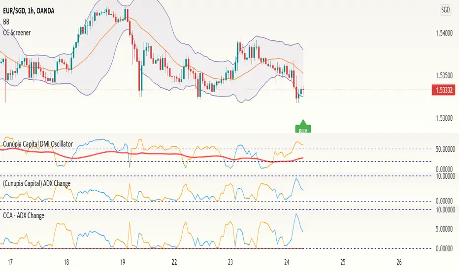 This shows the velocity in which the ADX value is moving. If the velocity is decreasing, the value will go to 0, if it's negative, the line will change to orange. Very useful to tell when the momentum is changing in a particular direction.
