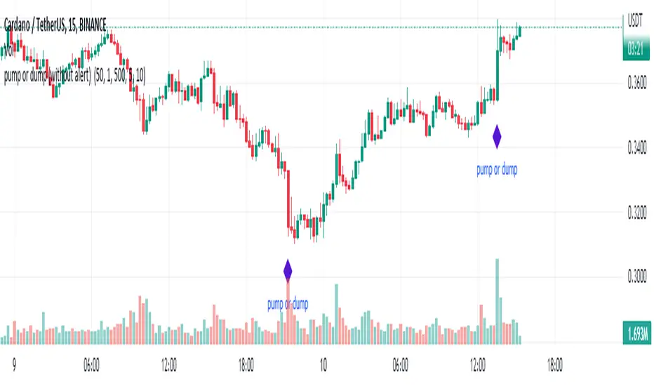 Therefore, according to the calculations that this indicator performs on the volume of transactions and the size of the candles and taking into account the support and resistance levels, we can well identify the potential points for creating a pump or dump in the market.