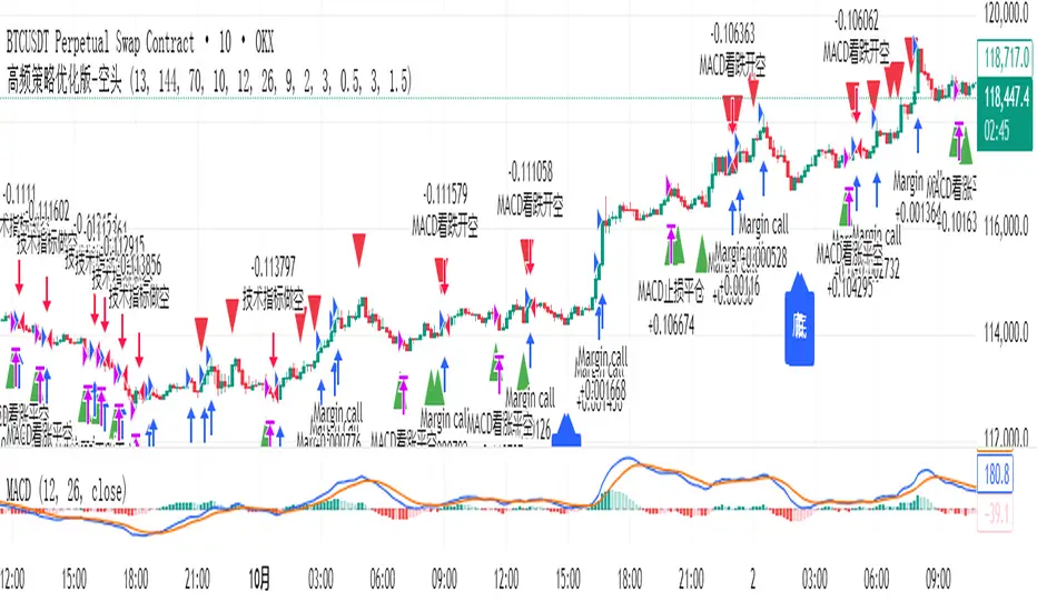 Open Condition Reversal: Change the condition of the TEMA fast line above the slow line to the condition of the fast line below the slow line RSI condition from " buy above the threshold " to " short below the threshold ", and adjust the default threshold from 30 to 70 (more suitable for shorting overbought area) moving average direction judgment from up to down stop-loss direction adjustment: Short stop-loss Settings above the entry price (entry price * (1 + i _ sl) ) Short stop-loss set below the entry price (entry price * (1-tp) Tracking stop-loss level adjusted to below the entry price MACD logic adjustment: Preferred use of the bearish pattern as a short signal bullish pattern for closing risk management: Maintained a dynamic stop-loss mechanism, adjusted to protect the market from the bottom of the visual stop-loss strategy: The visual marking of the ACD energy column is convenient for monitoring signals to be fully tested before use, especially for adjusting RSI thresholds and stop-loss parameters to suit the characteristics of specific trading varieties.