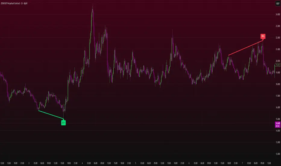 Optional BUY/SELL labels placed at the confirming pivot candle.