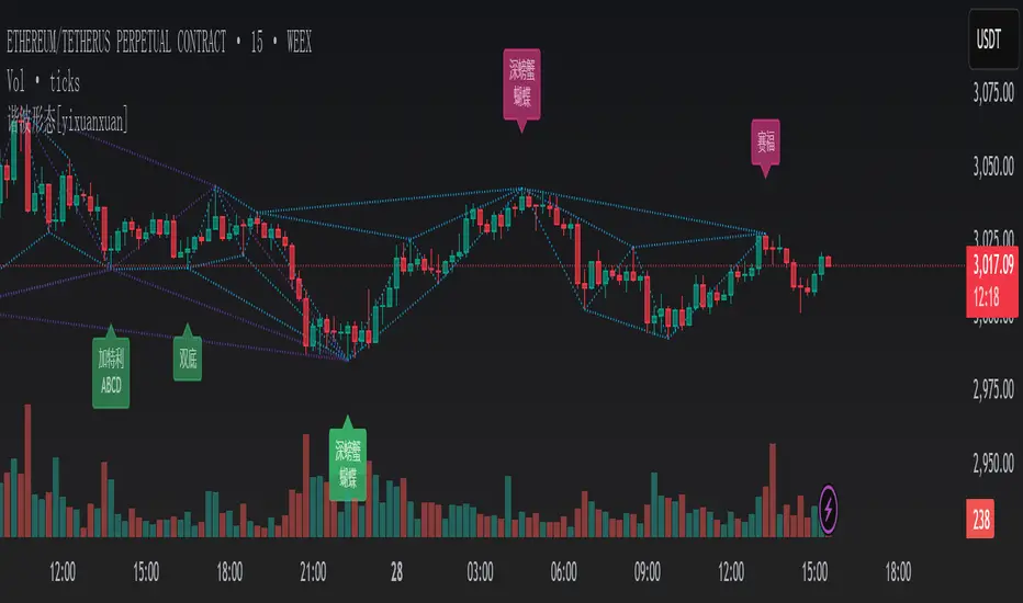 This is an indicator based on harmonic trading.It includes the identification of various harmonic forms, such as butterfly form, Gartley form, bat form, crab form, etc. You can use it as a good reference and check the forms you want to pay attention to in the settings.