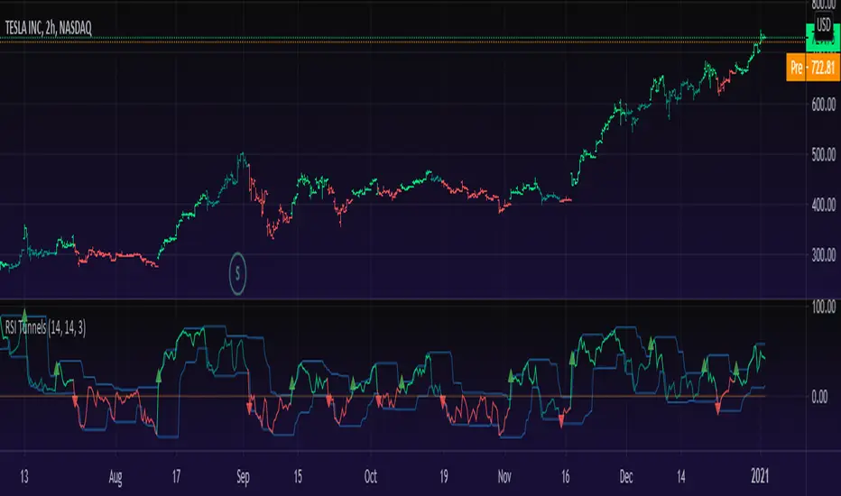 The tunnels are made by fetching the RSI previous highest high and previous lowest low.