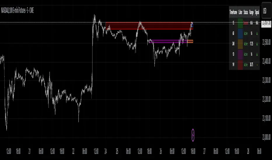 - Multi-Timeframe Support: Tracks up to five user-defined timeframes (default: 15m, 1H, 4H, 1D, 1W) to display price zones.