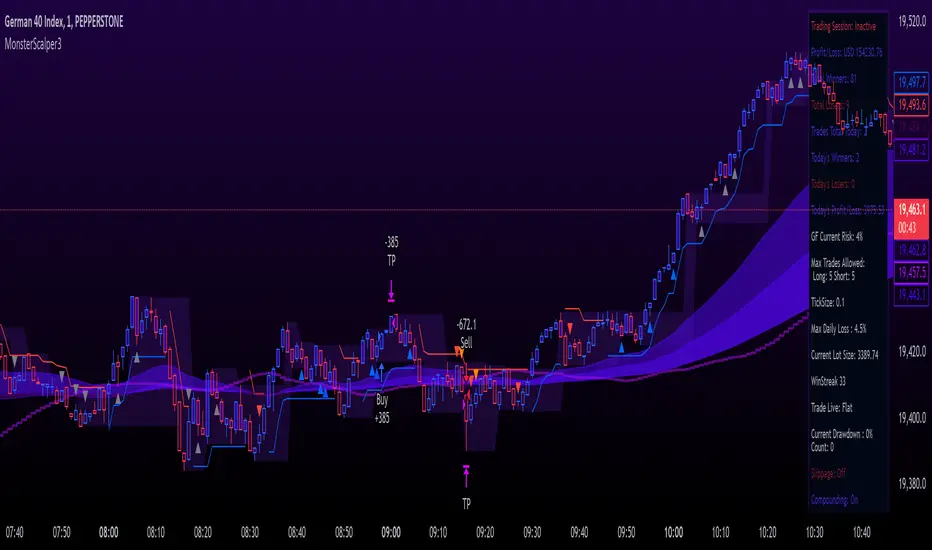 The ScalpMonster strategy originated from trading the DAX during the London open, utilizing simple logic.