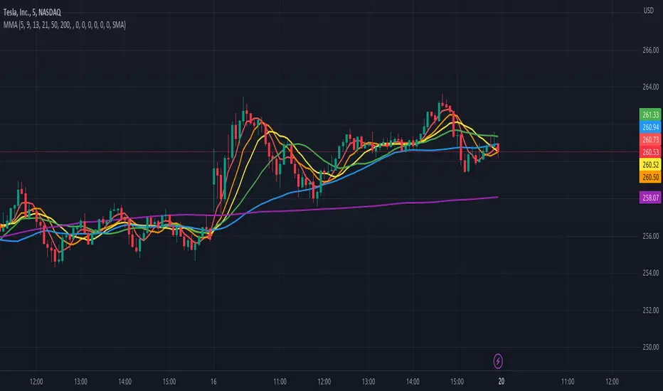 This indicators shows multiple moving averages in the same chart.