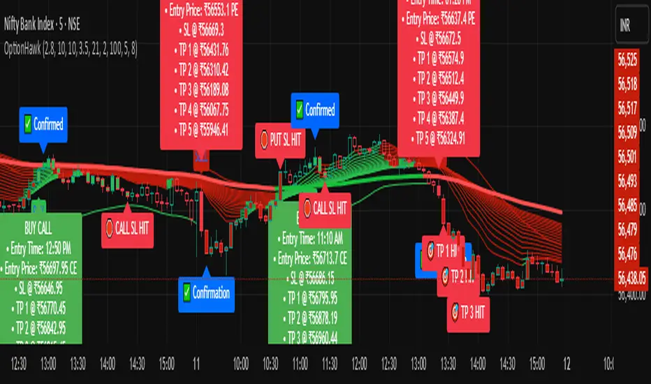 The "OptionHawk" script is a sophisticated trading tool designed to provide clear, actionable signals for options trading by combining multiple technical indicators and custom logic. It aims to offer a holistic view of market conditions, identifying trend direction, momentum, and potential entry/exit points with dynamic stop-loss and take-profit levels.