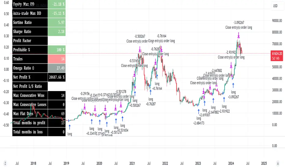 Many many months ago I built a long term tpi on the 6D chart. This is it. It uses the concept of tpi with additional algorithimic aspects in addition to the TPI components. So far it has a 100% success rate ever since I've built it,over a 90% success rate from the very beginning of BTC's price history. You may notice it doesn't include trades in 2014, 2018, and 2022. This is done on purpose because I incorporated a secret seasonality component basically no one in TRW knows about which has always corresponded to the years in which there have been bear markets in bitcoin. It's linked to a stock market seasonlity trait, and when this seasonality effect takes place I've coded the algo-tpi to not make buy trades. Moreover, this algo-tpi is a long only strategy in accordance with the principles of Adam's teachings, that long term tpi's are for long only approaches to the market. If you remember, shorting is only a property of SOPS or RSPS.