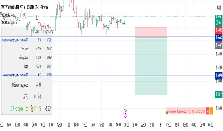 - Trader Assistant is a comprehensive TradingView indicator (Pine Script v5) that combines volatility analysis (ATR), trading volume monitoring, and signal generation to support decision-making.