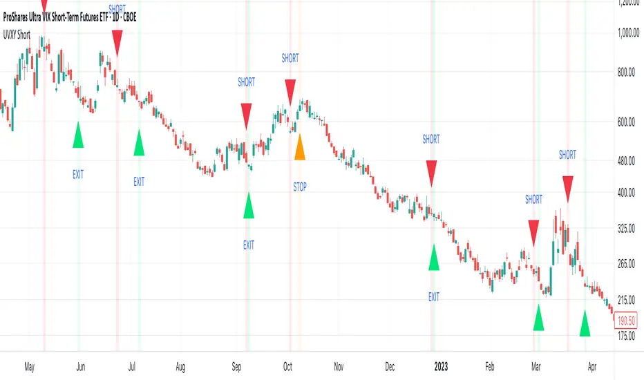- Short UVXY directly once the signal confirms a top and exit the trade once the signal confirms to exit.