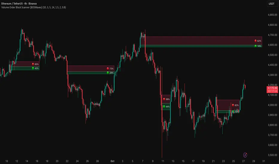 The Volume Order Block Scanner visualizes how institutional participants interact with the market through zones of accumulation and distribution.