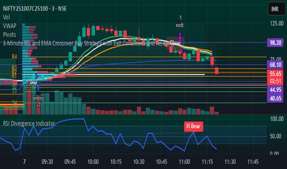 RSI and EMA Crossover Buy with Exit Conditions and Re-entry