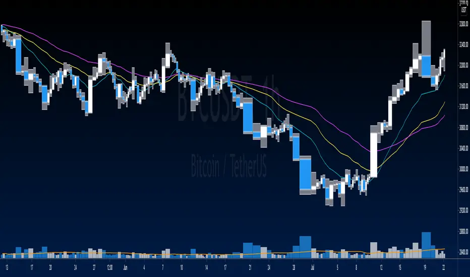 Equivolume bars. Width is determined by volume. Please note that equivolume bars are rendered independently of the time scale.
