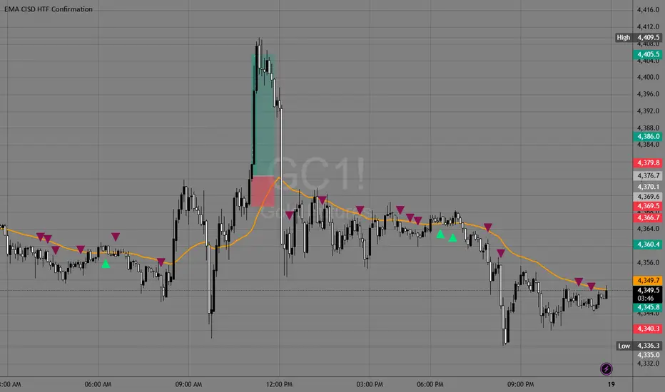 EMA CISD HTF Confirmation is a visual TradingView indicator designed to support structured, rule-based market analysis using EMA alignment and CISD-style confirmation. The indicator highlights higher-timeframe bias and momentum conditions to help traders follow predefined rules and reduce discretionary decision-making.