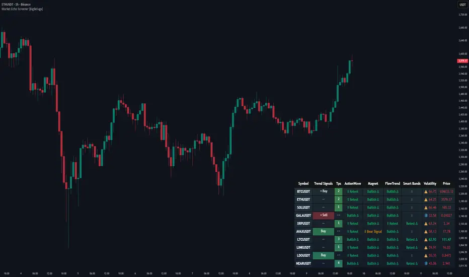 The Market Echo Screener is not a simple signal table — it’s a layered analytics framework.