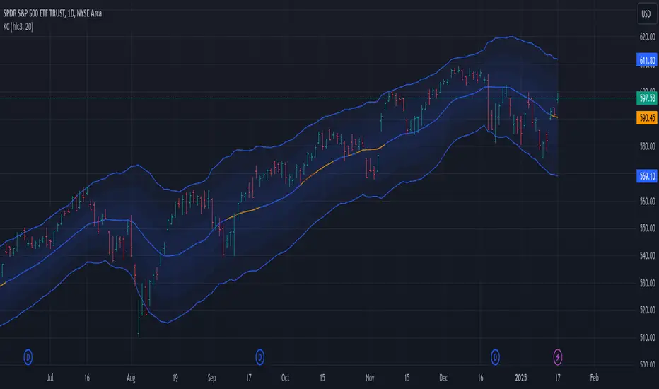 A multi-talented indicator that was carefully crafted to avoid cluttering your charts. Keltner Clouds draw up to 3 bands of the Keltner Channel, but uses light hues of color instead of lines to plot the bands. Each cloud band has customizable ATR factors. And that's not all; it also has a custom mid-line mode bringing even more information to your charts! The mid-line mode allows you to pick one of various additional studies to color-code the middle line of the Kelter Clouds. It's not just a Moving Average line anymore. It's fitted with multiple indicators that allow you to see strength of trend, choppiness, trend direction, and more.