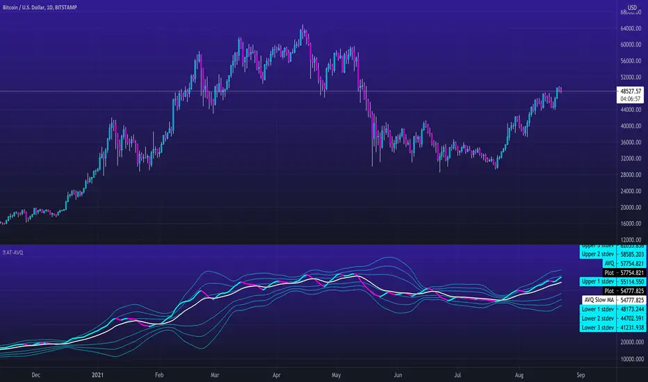 Short – Consider a short when the AVQ line goes below the Moving Average(i.e. The AVQ Red Line goes below the white MA)