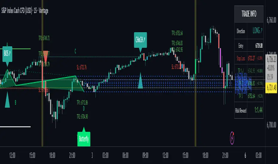 ## 🚀 Професионален Индикатор: Хармонични Фигури, Пазарна Структура и Векторни Свещи [All-in-One]