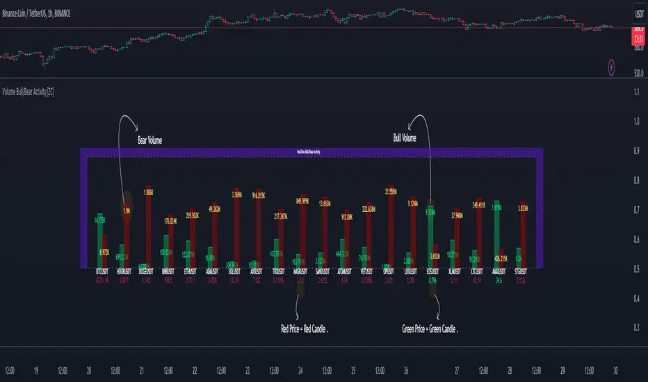 - The green bar indicates bull volume, reflecting activity within the last candle of the symbol.