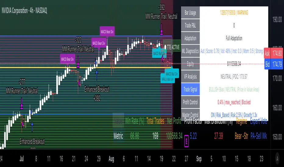 - Full gap-aware and pattern-boosted logic: Gaps and major fills now update trade confidence, risk, scoring, and regime logic as they happen—no more lag after large overnight or market open gaps.